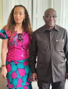 A diretora da Costa do Marfim, Jennifer Cúrcio, ao lado do embaixador Diamouténé Alassane Zié, fortalecendo laços de cooperação cultural e diplomática, destacando as riquezas culturais e o potencial turístico da Costa do Marfim.”