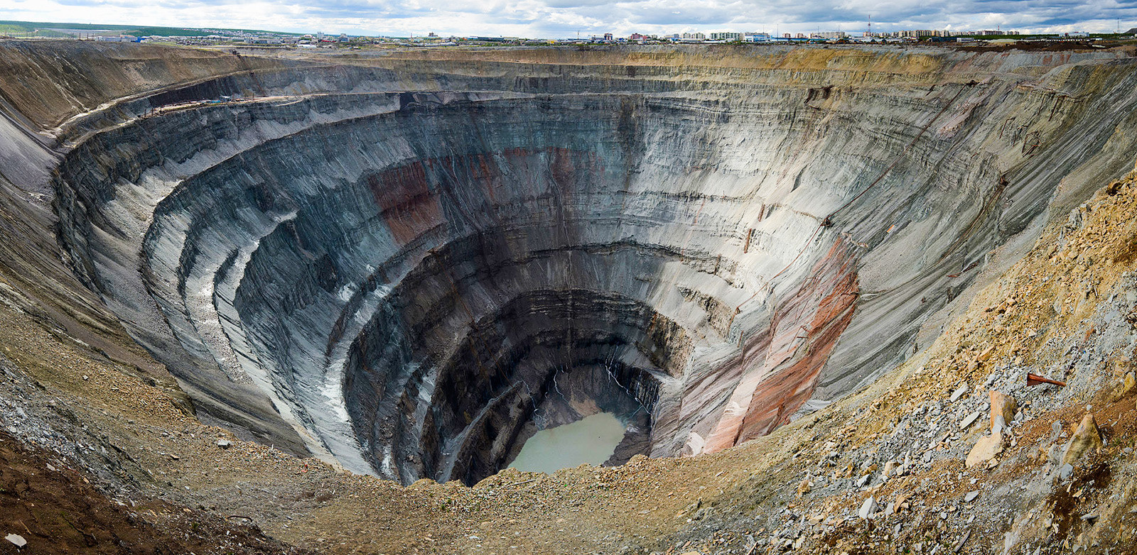 Esta antiga mina de diamantes é tão grande que os helicópteros não podem sobrevoá-la, sob o risco de terem que enfrentar enormes correntes de ar desestabilizadoras. Ela é o segundo maior buraco escavado do mundo, com 525 metros de profundidade e 1.200 metros de diâmetro. Você pode ver mais fotos deste lugar incrível aqui.