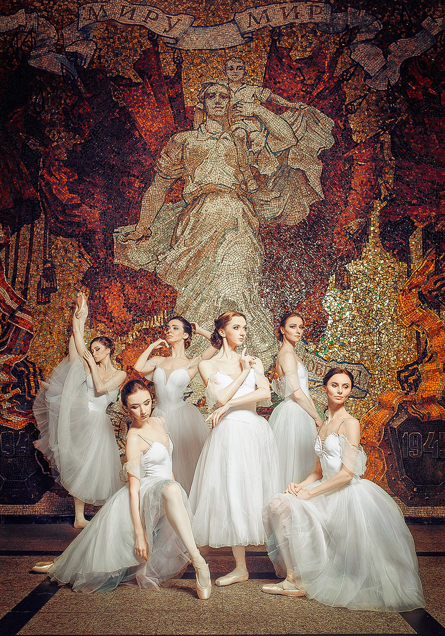 A arte soviética oficial é conhecida pela técnica do mosaico. Os mosaicos podiam ser encontrados em todos os lugares: em prédios administrativos, ruas, fábricas, ou, por exemplo, na estação de metrô Ávtovo em São Petersburgo, retratada nesta foto.