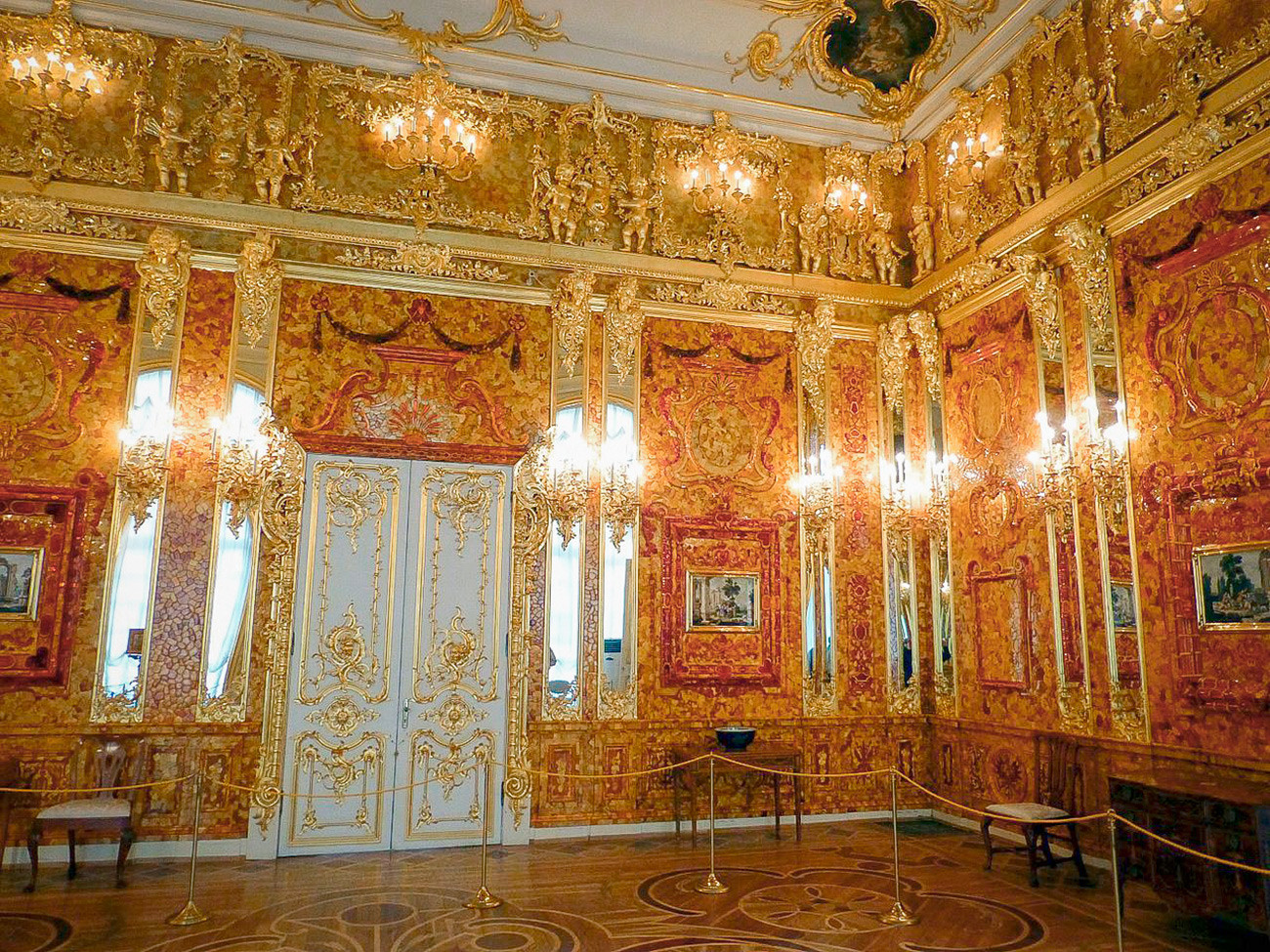 A lendária Sala de Âmbar era o orgulho da Casa dos Romanov. Seus itens, porém, desapareceram misteriosamente durante a Segunda Guerra Mundial e nunca mais foram encontrados. Apenas alguns de seus elementos sobreviveram à guerra. A Sala de Âmbar restaurada fica localizada no Palácio de Catarina, nos arredores de São Petersburgo. Leia mais sobre ela aqui!